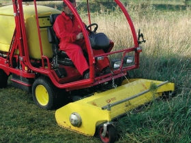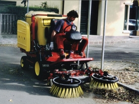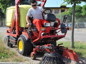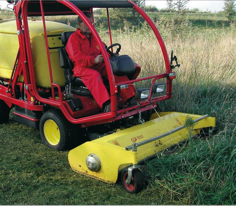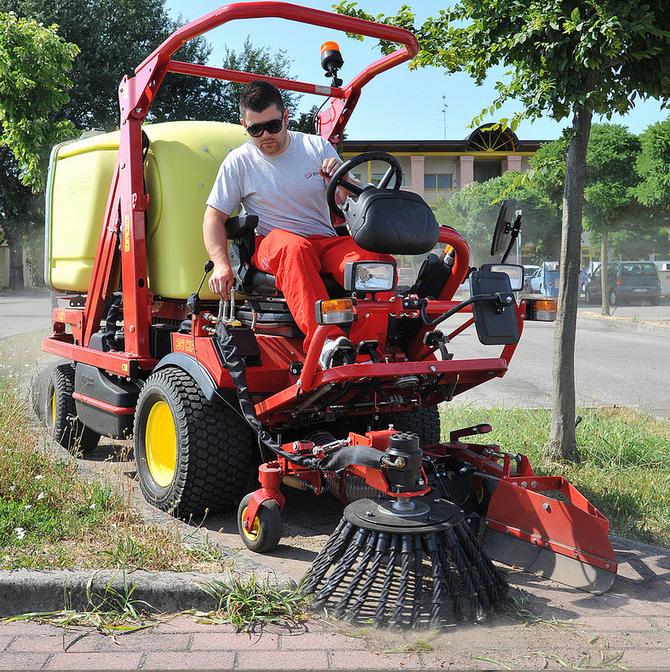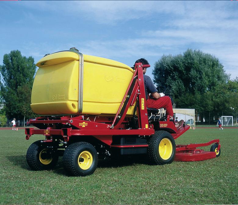 מכסחת מקצועית תוצרת Gianni Ferrari דגם Turbo1 עם מגוון מגשים לביצוע עבודות שונות.